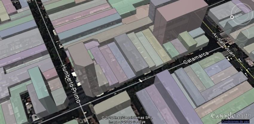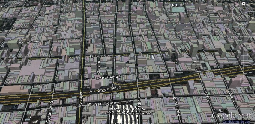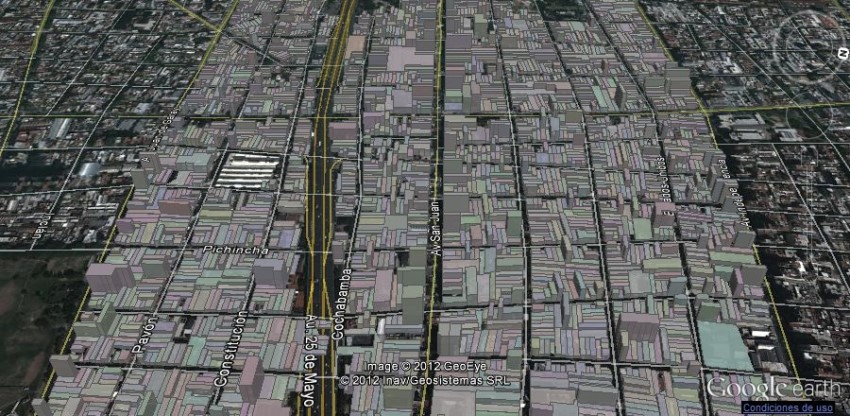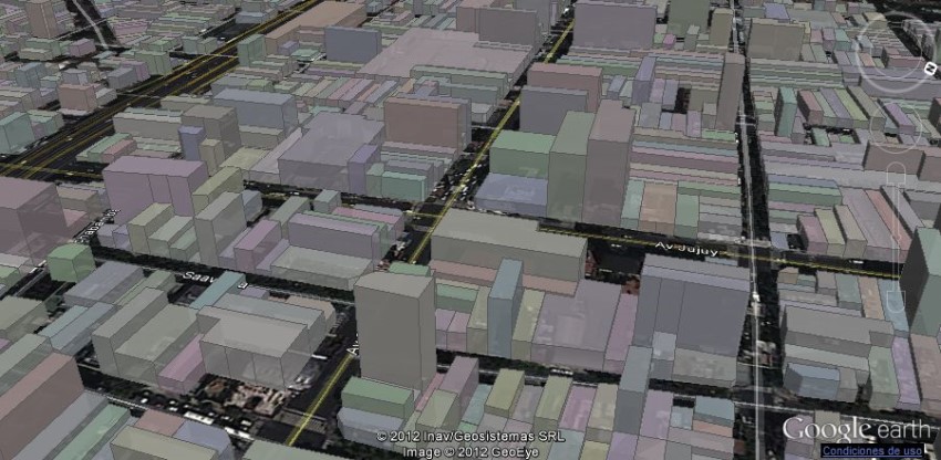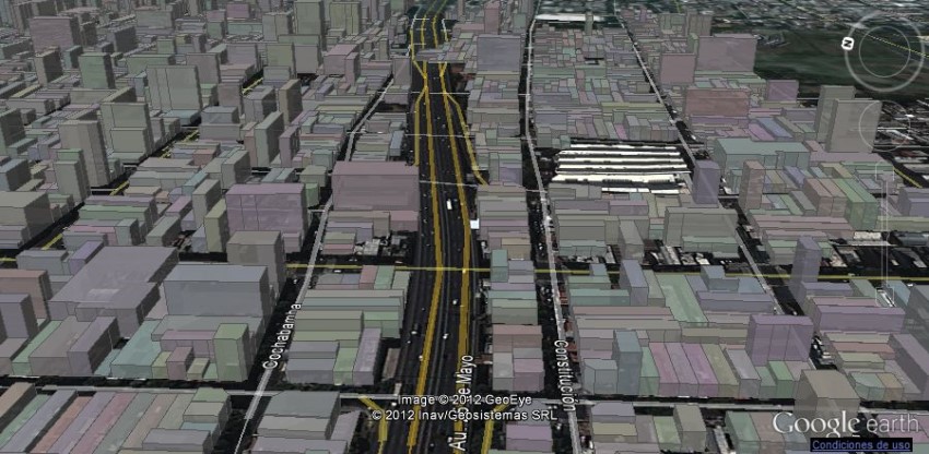 Buenos Aires 3D visualiza cualquier zona de la Ciudad en tres dimensiones, sobre Google Earth, respetando las alturas de los edificios.